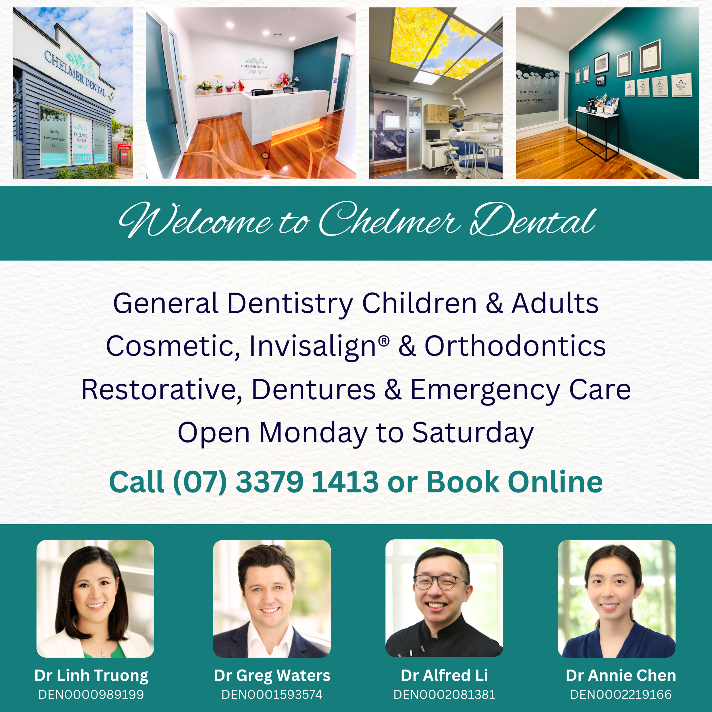 Practice Manager – Trina: admin@chelmerdental.com.au